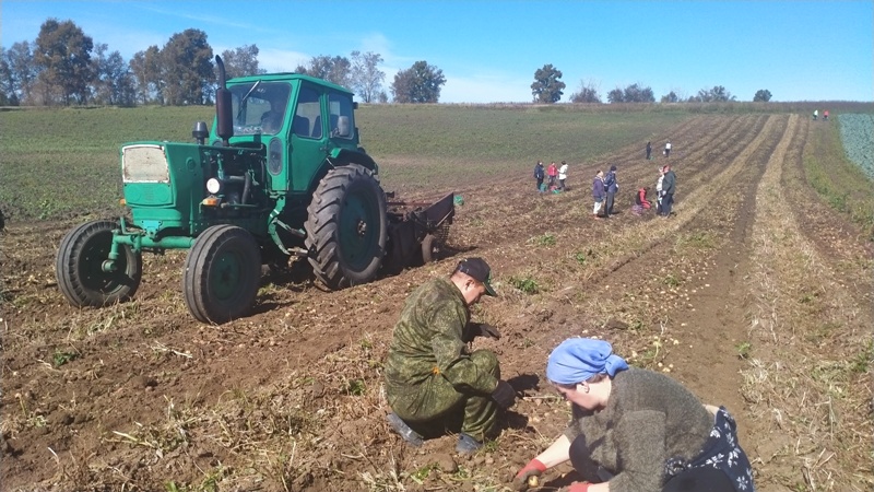 В этом году мы копали картофель 9 сентября. Погода была очень хорошая: солнышко нас согревало и радовало. Наши сотрудники охотно собирали картофель. Все очень старались, трудились на совесть.