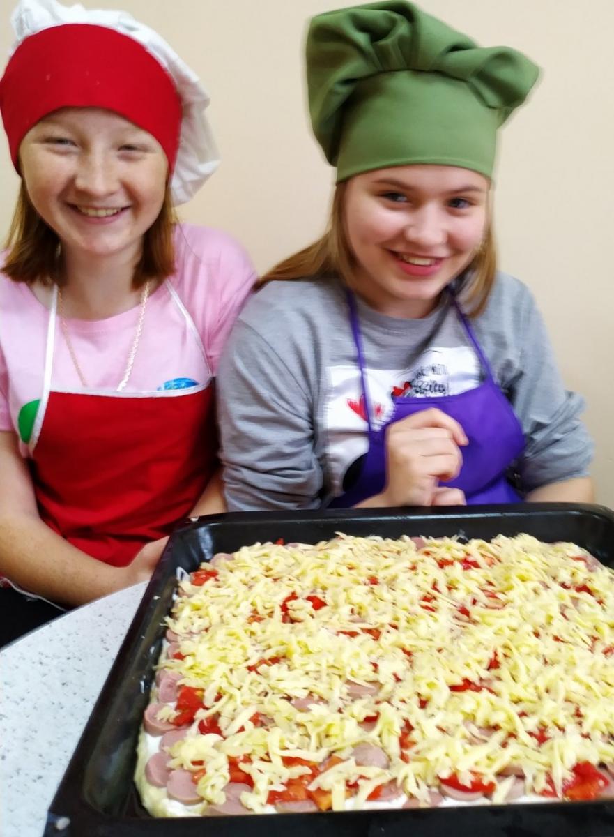Ребята учились заводить тесто, раскатывать его нужной толщины, резать ингредиенты для начинки.