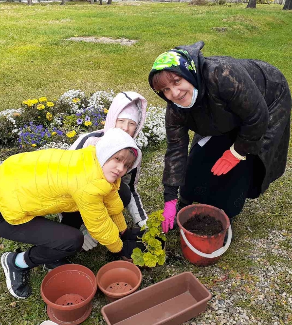 27.09.2021 года под руководством воспитателя, Мушниковой Валентиной Валерьевной и музыкальным руководителем, Дроновой Жанной Васильевной активисты посадили герани в цветочные кашпо, для благоустройства воскресной школы.