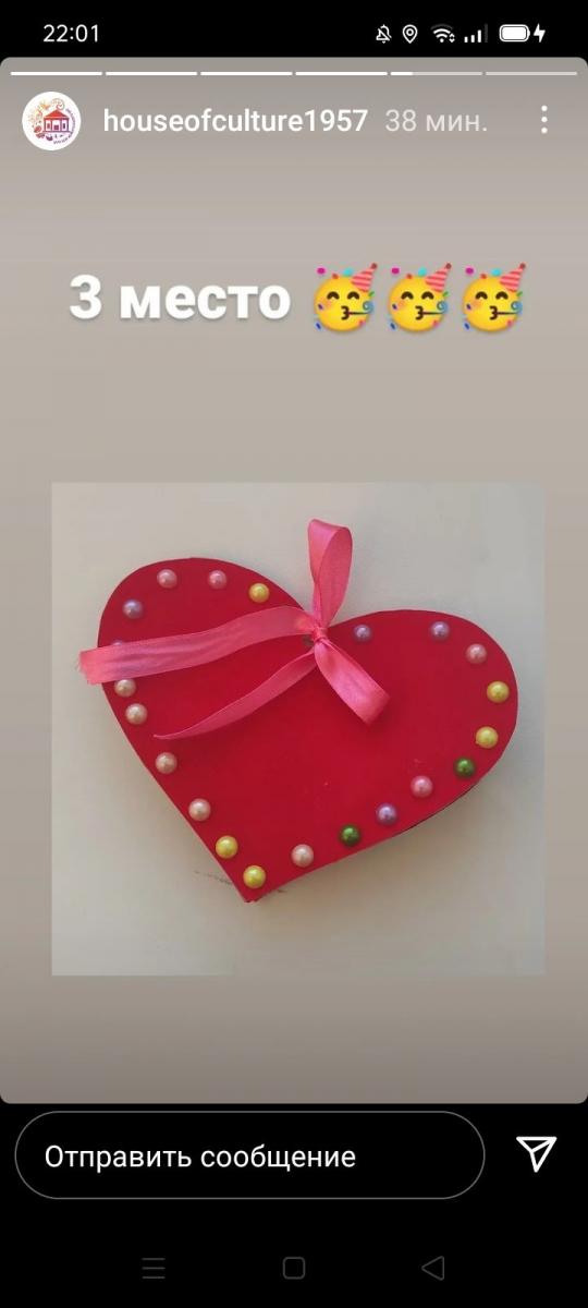 13.02.2022 г, Организатор конкурса Валентинок «Стрела Амура", Дом культуры Хомутово обьявил результаты конкурса - при награждении победителей 3 место было присуждено воспитаннице учреждения. Руководитель: Шункова Ксения Сергеевна, воспитатель отделения диагностики и социальной реабилитации ОГКУСО СРЦН Иркутского района