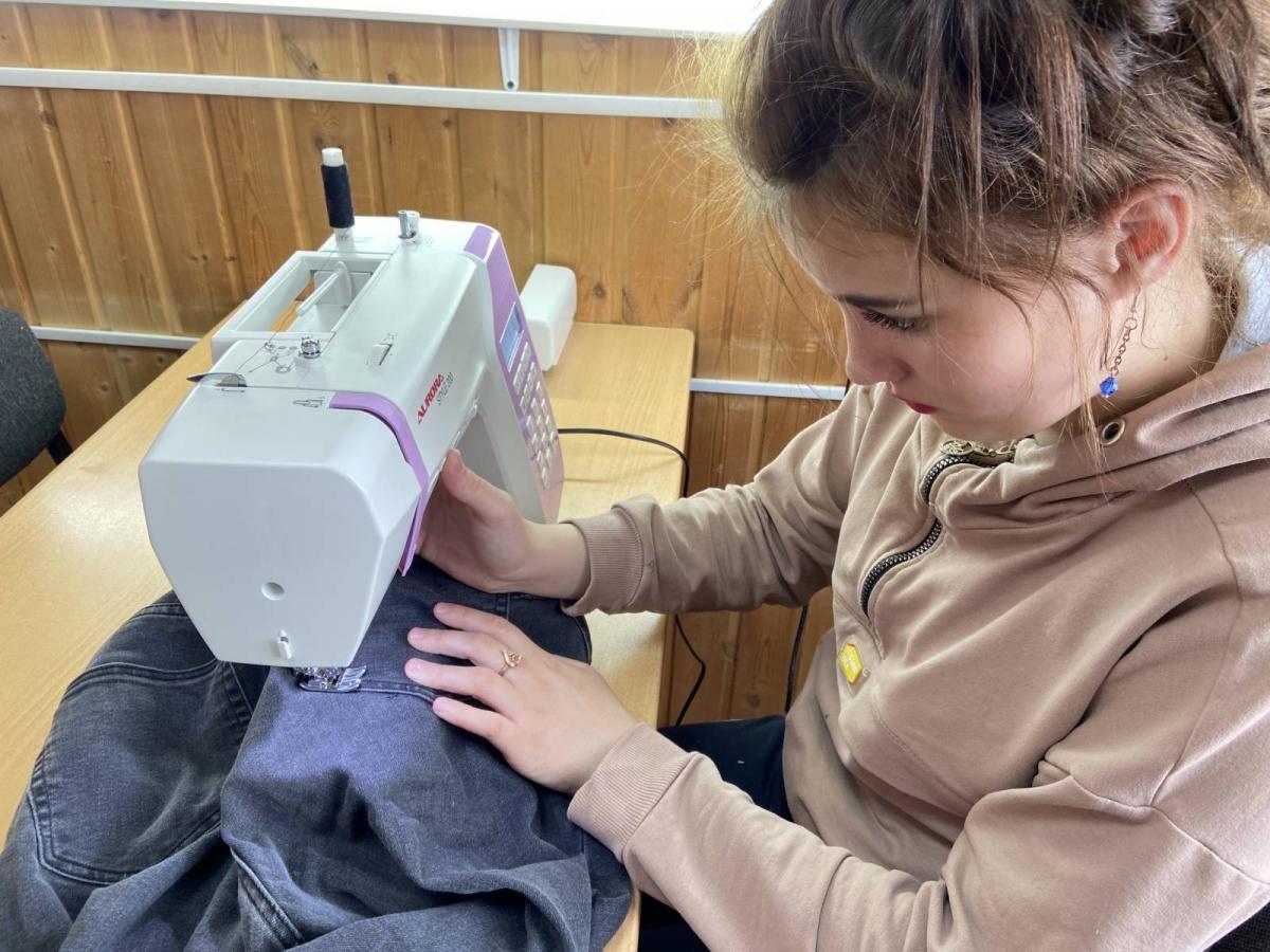 Ремонт одежды нужен многим, но не все его умеют делать. Некоторые даже не догадываются, что зачастую это просто. Но не всегда. На занятии в мастерской, наша юная мастерица отремонтировала свои джинсовые брючки, дала им вторую жизнь, прошила накладной карман, укоротила и подшила низ брюк, вшила резинку в пояс. Результатом своей работы осталась очень довольной.