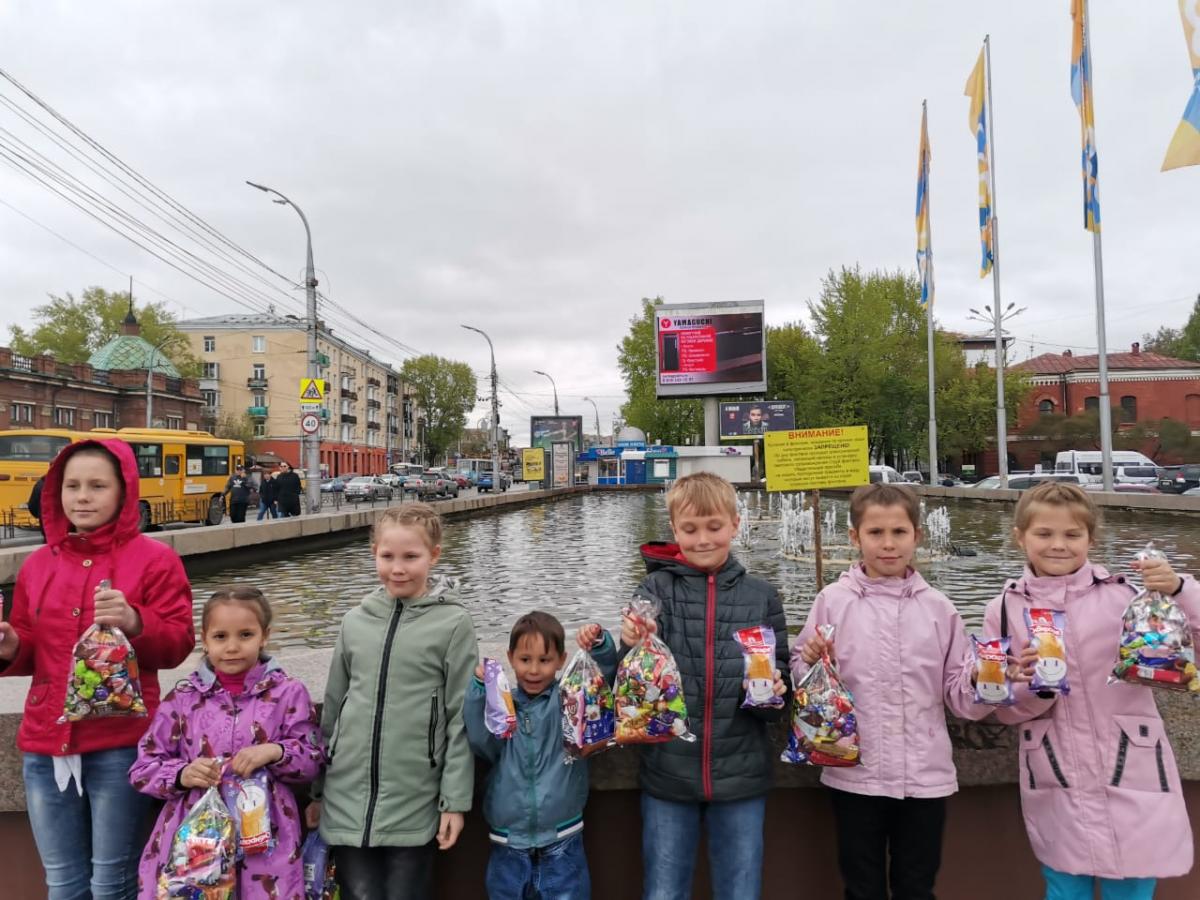 В завершении спектакля  представители фонда подарили детям подарки и угостили мороженым.