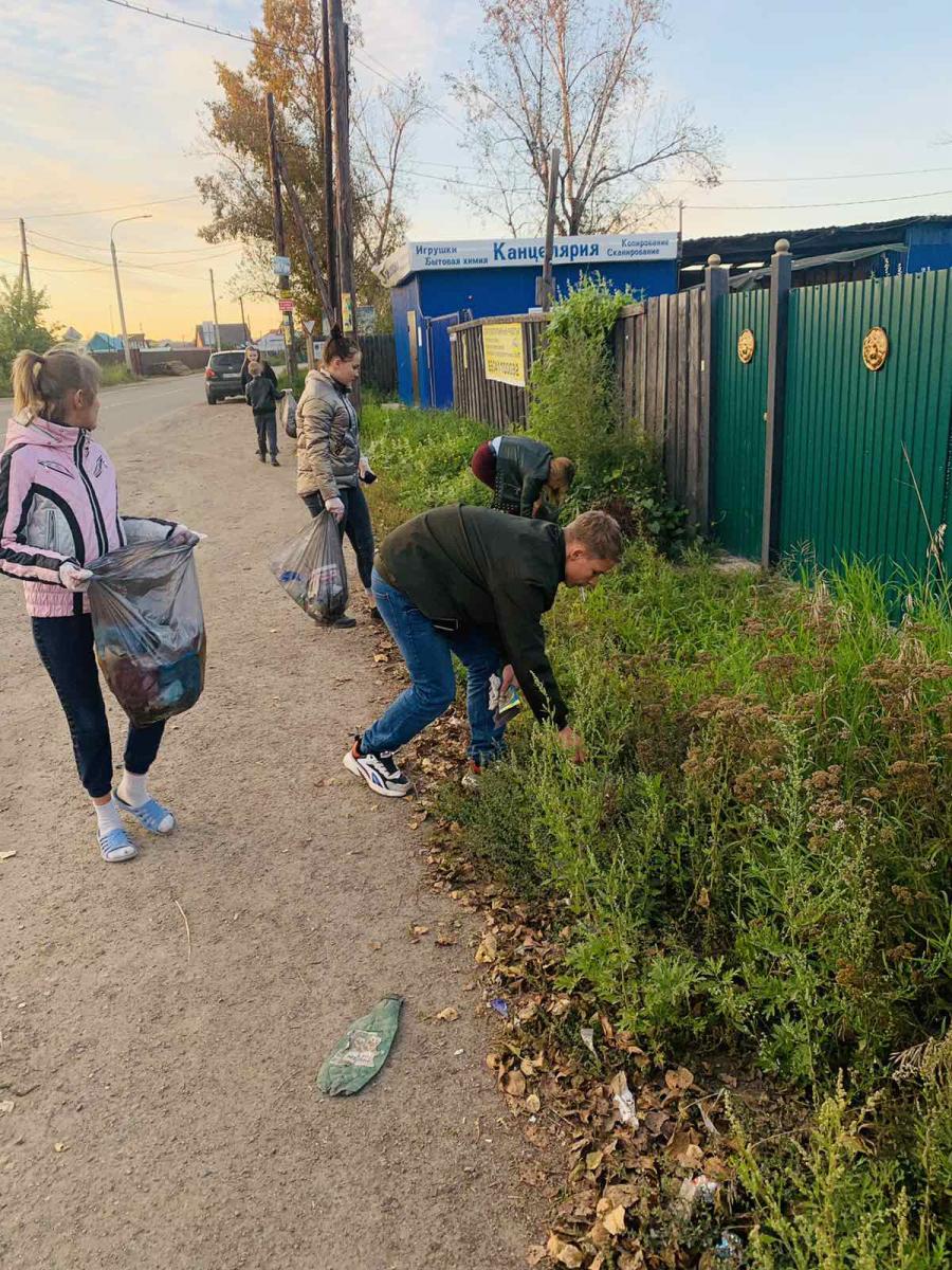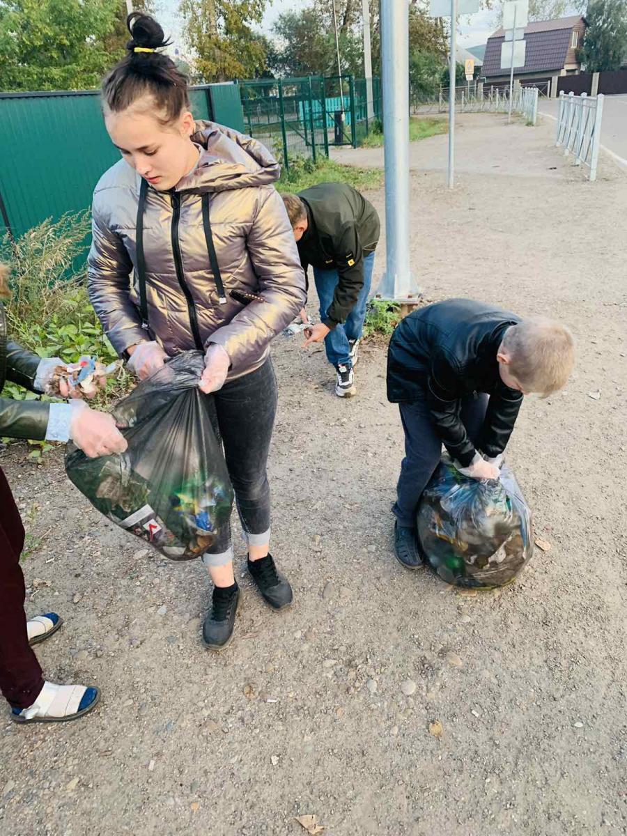 «Отряд министра»,  дружно разобрав рабочий инвентарь: перчатки и мусорные мешки, собрали фантики, бумажки, пластиковые бутылки, пакеты, на одной из улиц нашего села.