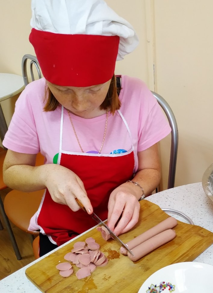 Ребята учились заводить тесто, раскатывать его нужной толщины, резать ингредиенты для начинки.