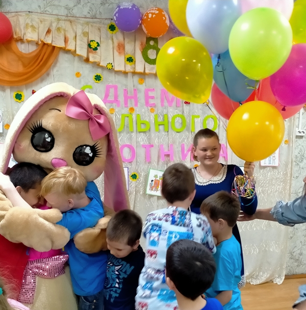 Началось мероприятие с чествования именинников, которых встречали дружными аплодисментами. Каждого из них поздравили друзья.  Гостем праздничного мероприятия явилась  Зайка, благодетелем которой была игровая комната «Карамелька» (с.Хомутово). Она веселила ребят своими играми, зажигательными танцами, веселыми песнями и  шутками.