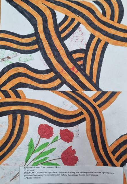 В целях  расширения условий, способствующих мотивации развития творческих способностей детей, раскрытия их творческого потенциала, а также воспитания у подрастающего поколения чувств патриотизма и гордости подвигом Героев Отечества, специалистом по социальной работе отделения помощи семье и детям ОГКУСО «СРЦН Иркутского района» Денисенко Ю.В. были вовлечены дети из семей, состоящих на социальном сопровождении  в отделении помощи семье и детям в участие в областном конкурсе художественного творчества «Наш Герой», организатором которой является Иркутское  региональное отделение Всероссийской политической партии «Единая Россия».