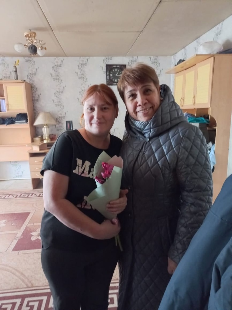 В Международный женский день  8 марта каждой женщине приятно получить в подарок частичку весны – букет цветов! В 2023 году не исключением стали и мамы из семей, находящихся на сопровождении в отделении помощи семье и детям. Нежные букеты тюльпанов, бережно подготовленные  сотрудниками магазина «Ботаник», которым руководит Рейн Алена Дмитриевна были подарены мамам из многодетных семей!